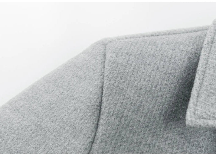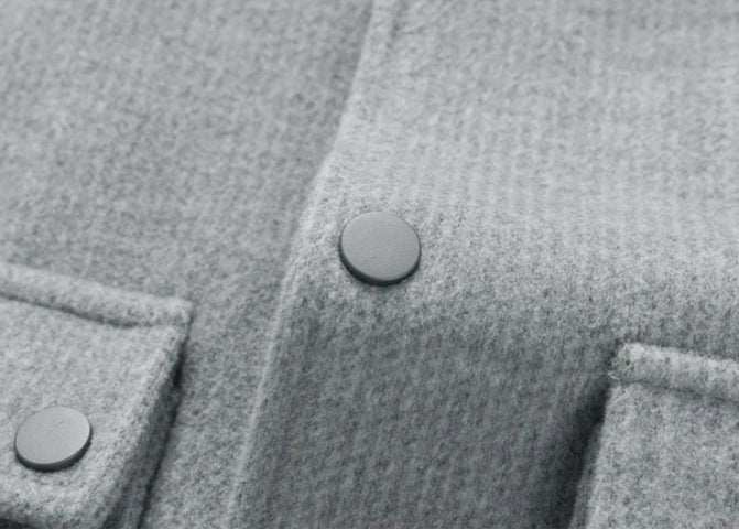 This jacket is crafted from a luxurious wool-blend fabric that offers warmth, breathability, and an ultra-soft feel against the skin. Its clean lines and structured silhouette take cues from Japanese minimalist tailoring, combining timeless design with functional elegance and finished with oversized flap pockets.